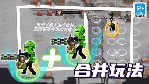 拖拽合并火柴人可升级为更强单位,提升防线整体实力