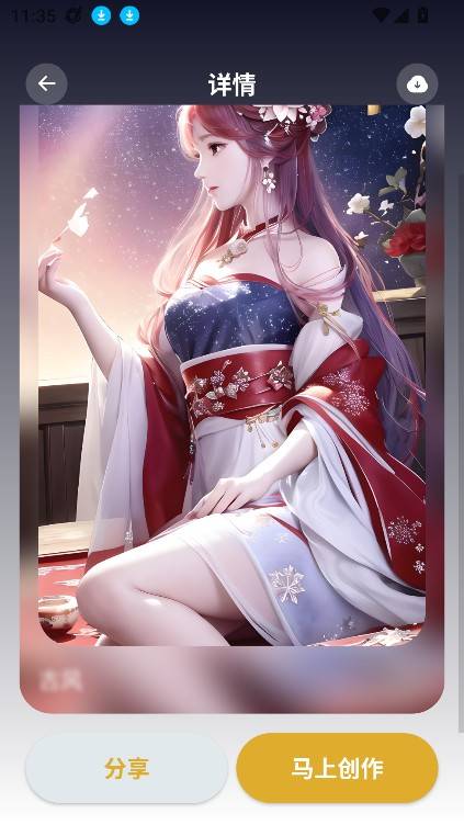 StableDiffusion手机版当用户画完一幅AI的绘画之后,还可以发给别人一起欣赏,在APP里面能互相关联起来相互分享自己的想法与灵感给别人让你的想法被更多人看见,也就是把一个想法放大化,这样子就更能做出更美丽的作品。