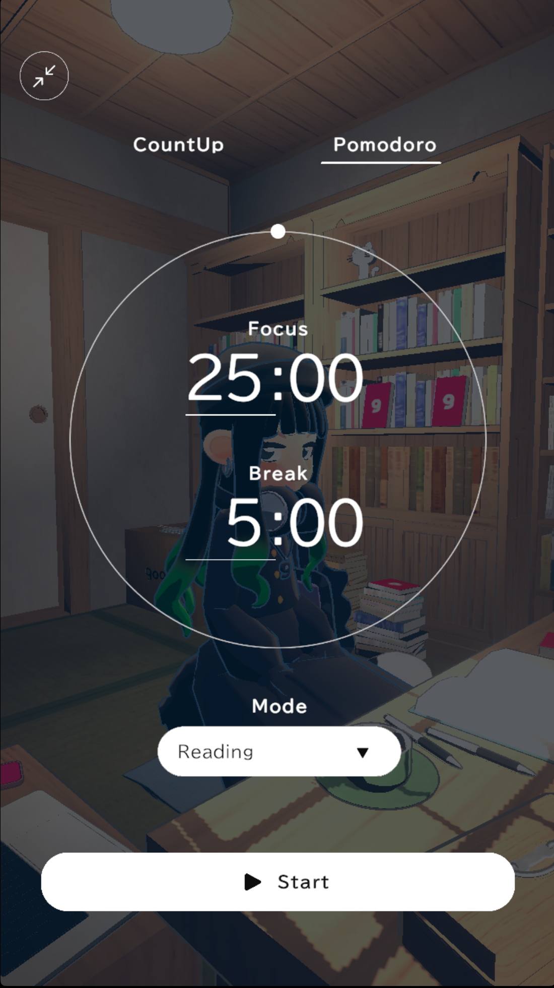 不仅如此,gogh官方正版里还有番茄时钟、不同类型的白噪音和背景音乐可供玩家选择,并且屋外的时间环境也能够自由切换,从白天到黄昏再到夜晚,在专注模式下为玩家换上各种各样不同的姿势和动作看书,玩电脑玩游戏,玩手机或者发呆等等。在适合玩家娱乐学习工作的环境之中给玩家伴奏