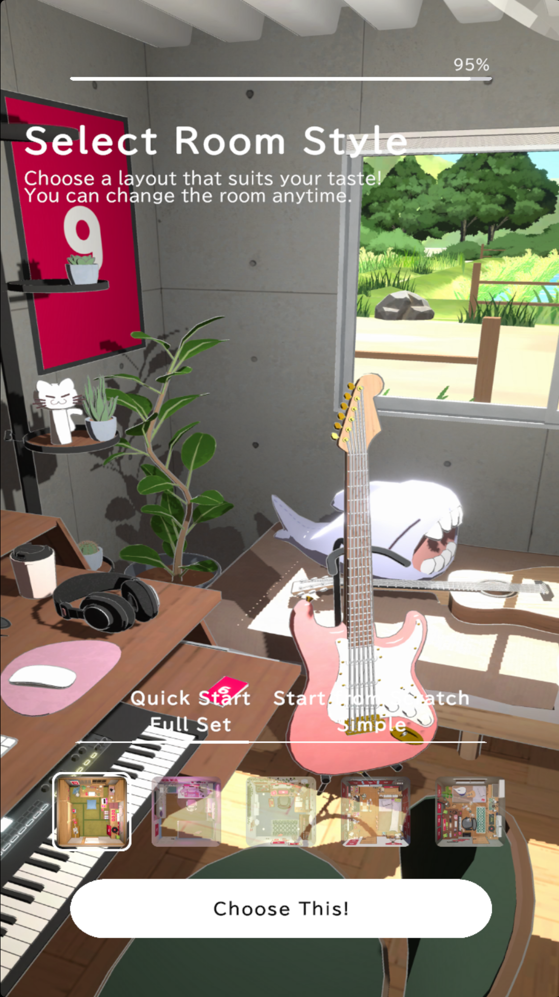 3、 接下来是选自己最喜欢场景的房间了,有五种不同风格的房间可以选择哦。当你正式进入游戏时会看到你的角色正坐在桌子前等着你