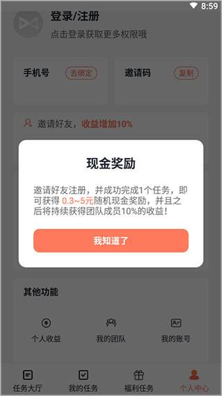 3、 用户登录后可通过邀请好友完成任务赚取红包