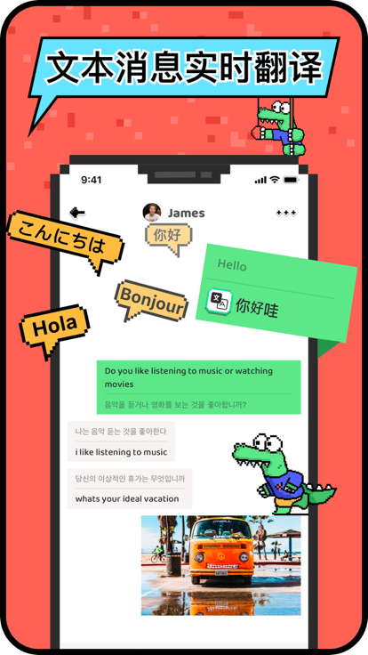 全球交友无界限: 支持多种不同国家语言的切换与翻译,让全世界各地的语言障碍和地理障碍全部消失不见,世界各地的人们能够畅所欲言地进行交谈,认识更多的世界朋友。