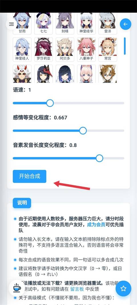 1、 工具界面底部设有原神语音合成按钮,点击可进入