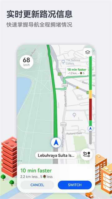 2、 华为地图导航实时公交信息提示可告知我们部分城市公交车的出发,到达实际路况,让我们的出行时间更加合理,路线更加合理。
