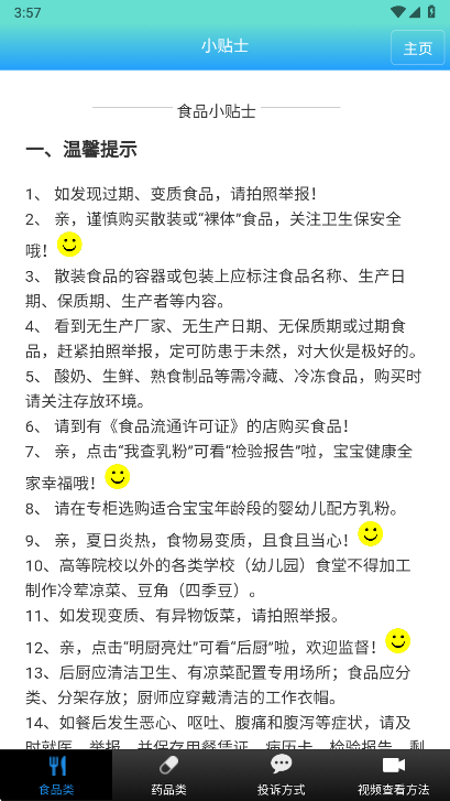 5、 小贴士包含食品与药品信息并提供商品投诉渠道