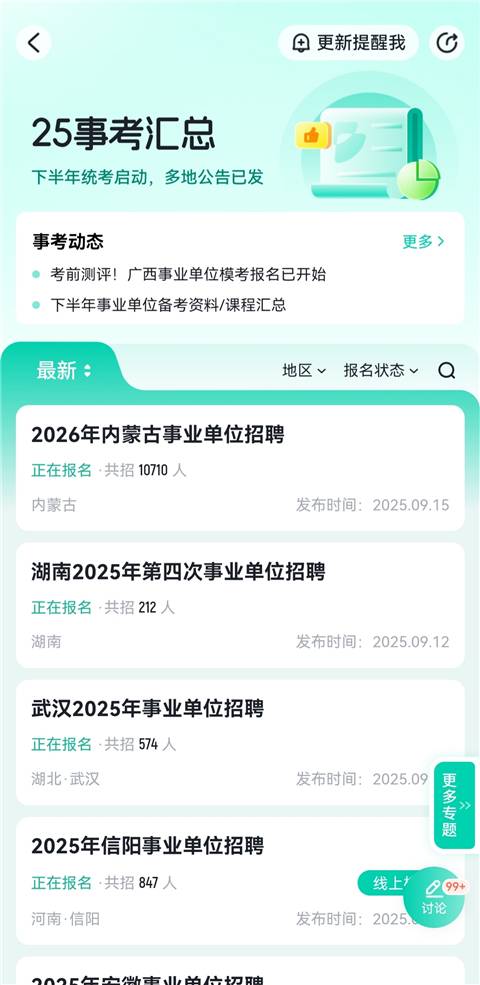 2、 实时更新考试信息并提供个性化提醒服务,确保考生把握每次报考机会