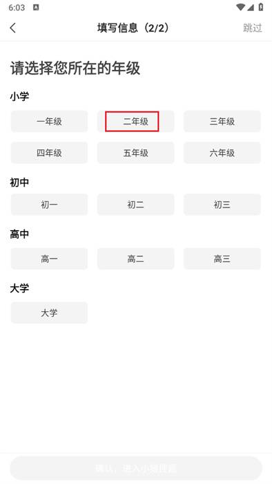 2、 此时应根据个人所在年级进行选择,例如【二年级】
