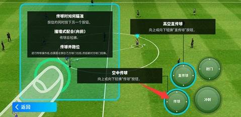 2、 队友空档时,点击传球按钮即可精准传至其脚下并控球