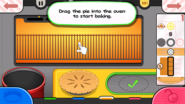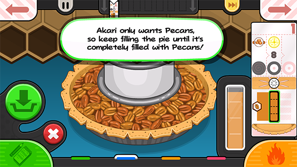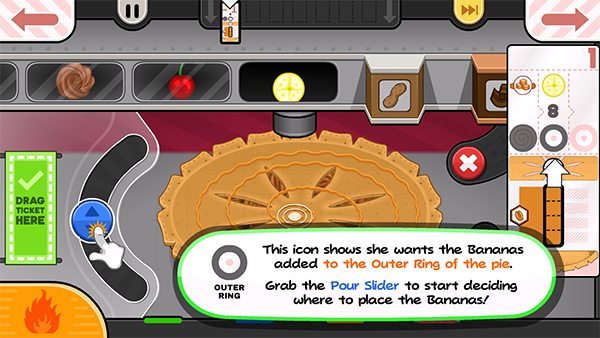 “To Go”游戏中之前出现过的浇头箱轮播功能重新出现,这样您就能方便地查看哪些浇头可供选择,转动 Topping Bins 这个旋转木马来挑选想要添加的浇头,接着拿起纸杯蛋糕,把浇头平铺其上。点击一个按钮,纸杯蛋糕就会戴上节日礼帽,再轻轻一滑,就能轻松地把两个纸杯蛋糕上的浇头调换位置。
