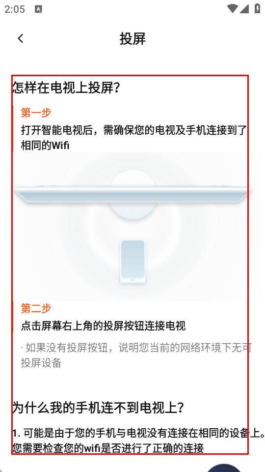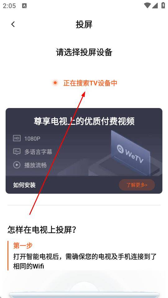 如果未找到相关设备,可以查看投屏页面底部有关如何在电视上投屏的指示信息,以此来确认手机与电视是否已连接到同一个 Wi - Fi网络当中。