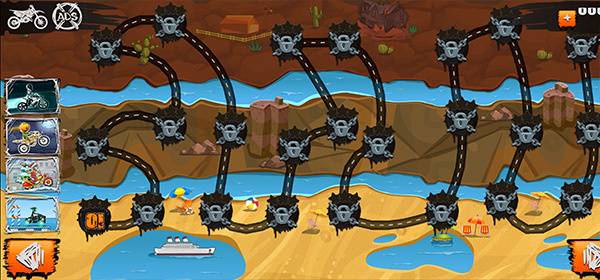 多地图模式下,游戏有四张风格各异的世界地图,每张地图含有诸多挑战关卡,场景涵盖繁华都市,荒凉沙漠,寒冷雪山以及茂密丛林等,各种化的场景设计使得每次闯关时玩家都会收获独特的视觉感受。