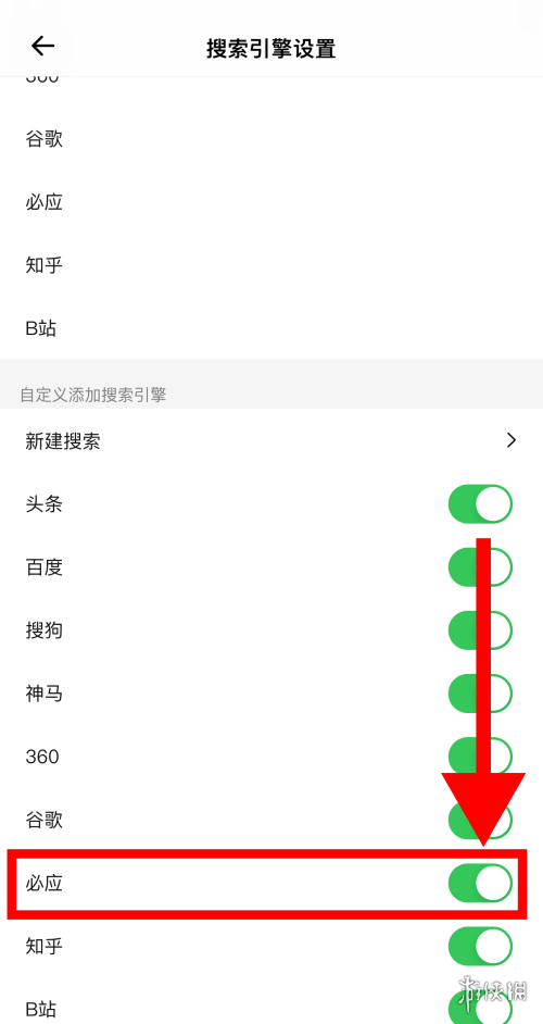 4、然后在搜索引擎设置页面中,打开其中一个右侧的开关即可。