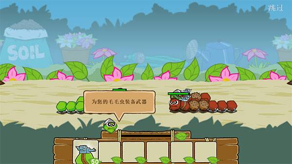 玩家来到此处需指挥自己的军队击溃敌人,第一步便是要给毛毛虫大军装备起来,要用喷火器,粘稠蜂蜜,地雷以及机械枪等各类武器全方位装备好它。