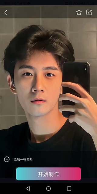 4、照片唱歌页面允许上传自己的照片,以此合成模仿自己唱歌的视频。