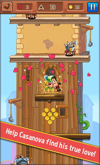 这款带有童话色彩的休闲益智游戏里,你会扮演一个洒脱不羁的骑士,为追寻内心所想的爱情而踏上探险之旅,游戏以清新明快的卡通风格呈现,玩家需灵活操控助力骑士登高塔,躲开路上的障碍物,以赢得公主的青睐。前行中会碰上不少对手,得要运用策略与技巧才有可能胜出,游戏把简单的触控操作和多种丰富的玩法结合,使得整个探险过程极具趣味性,赶紧来感受这段浪漫的攀登之旅吧,喜爱的朋友可去17手游网下载。