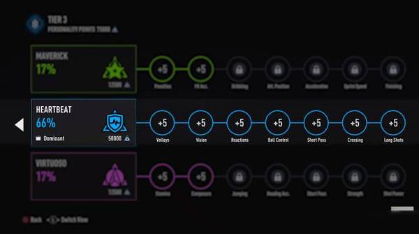 新的球员性格系统依照球场内外的行为来判定球员的性格,存在三种不同种类,即个性型,领袖型和大师型,它们分别对应机会主义者,球队核心以及技术高超者,球场之外发生的各种事情,比如关心队友或者漠视队友,投资科技公司或者购置跑车之类的举动,都会对性格产生影响,系统会收集并考量球员的行为表现,工资以及投资所得的收益能够被用来开启新功能或者加强相关属性。