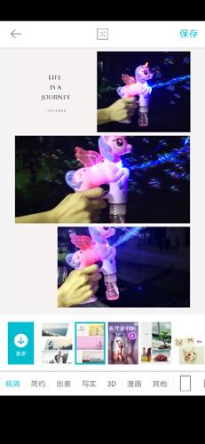 杂志拼图需挑选1 - 9 张图片,接着点击“启动”按钮,此处可看到不同风格的拼图形式,极简,简约,创意,写实,漫画等等,每种风格包含若干个模板供你挑选,这样就能营造出杂志般的视觉效果,成为一位杂志大片中的女神或者男神。
