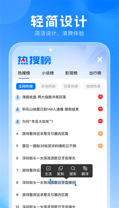 YY浏览器安卓手机版APP使得用户在移动端可获得较为优质的上网体验,该软件采取极简设计风格,首页干净明晰,缺乏多余繁杂的元素与广告打扰,从而令用户的目光更为集中,观看更为愉悦,它还赋予用户依照个人偏好来自行设置浏览器的外观及功能,包含挑选主题,背景,自行定义快捷方式以及工具栏布局等,以此来符合用户的专属化需求。