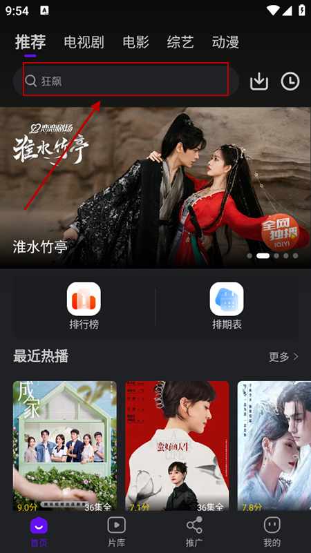 2、也可以在顶部搜索框中输入关键字,找到影片播放。