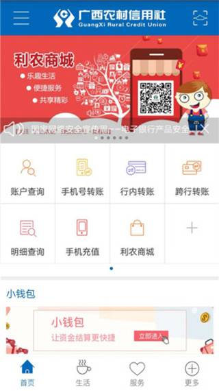 广西农信2026最新版是由广西农村信用社(农村商业银行,农村合作银行)专门针对广西民众打造的手机银行软件,其具备简洁流畅的用户界面设计,可带给用户良好体验,而且采用了诸多密码保护机制,用户经由手机动态密码完成各种认证之后,就能有效地保障自身资金安全,利用此软件,用户能够随时随地享用银行之间转账,余额查看,交易明细查看,固定活动双向转账,每周抽奖,每周音乐以及手机充值之类的金融服务,而且,用户还能凭借广西农信app立即实施转账操作,这十分便捷,无需前往网点办理,从而极大地节约了用户的时间,以后只需拿出手机就能马上处理银行业务,非常便捷又实用。