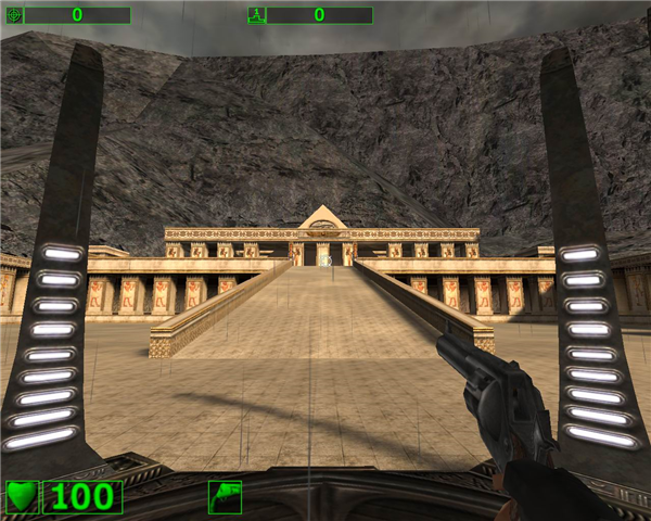 敌人数量众多,这彰显出游戏引擎的强大之处,在《Serious Sam》里,怪物并不是历来射击类游戏中最为精细绘制的,但它们给人的感觉很棒,而且动画效果十分流畅,当被玩家击中时,它们身上会喷涌出大量的鲜血。