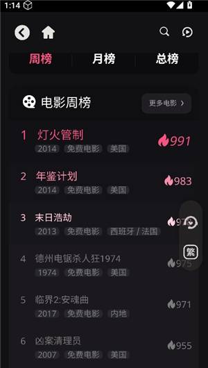 2、点击“榜单”之后,就可以查询到近一周或者一个月内热门上映的恐怖电影了。