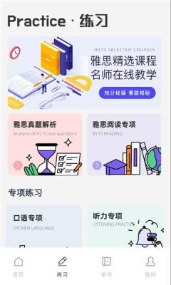 雅思专项训练包含听力,口语,阅读,写作这四个模块,会针对不同的题型给予专项练习。
