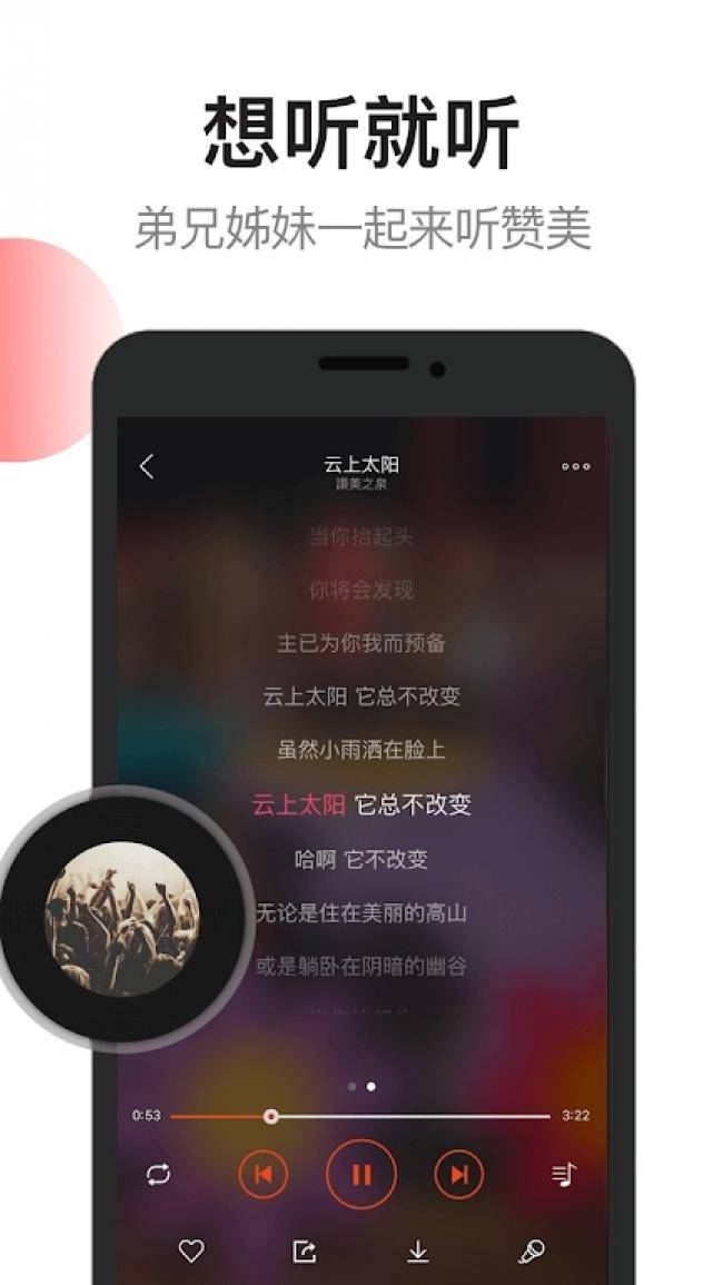 每天都有大量的赞美歌出现,你可以尽情地聆听。