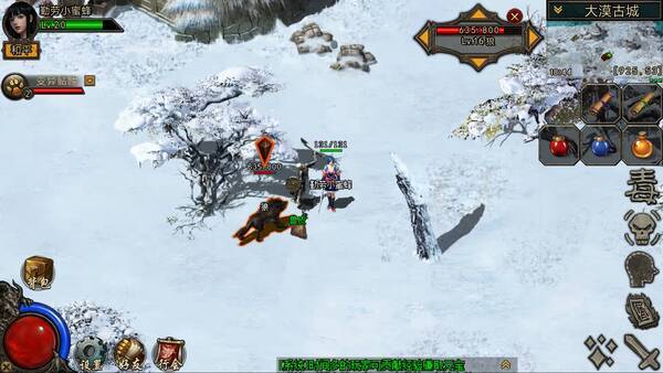 在大漠古城右上方雪地,左下方是羊圈(即南部树林),这里有一种800点血的狼,可以击杀得到兽皮。该游戏里对兽皮的需求较多,也比较容易售卖,其摆摊价格大约为20个元宝。