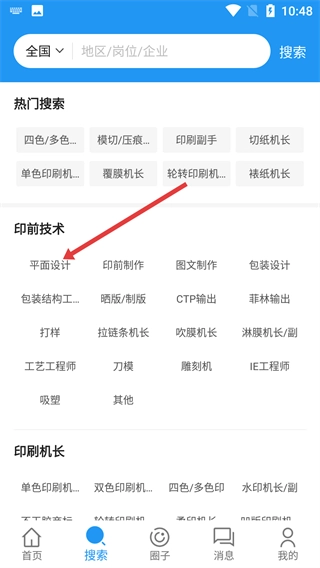 2. 在搜索页面的印前技术分类当中,当你点击【平面设计】这个选项的时候,就会进入到平面设计岗位的搜索结果页面。