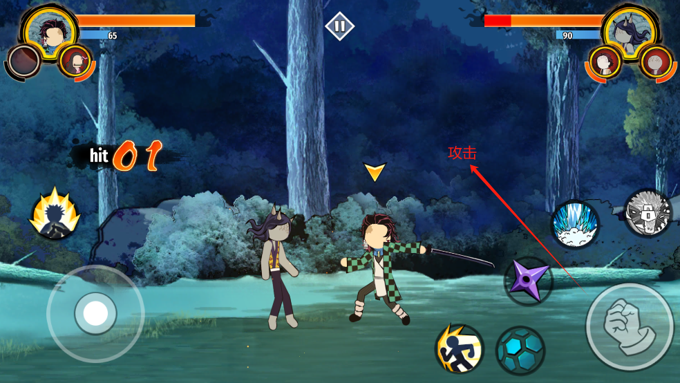 火柴人鬼灭之刃这款游戏是利用热门动漫IP鬼灭之刃制作而成的火柴人动作格斗类游戏,在游戏里,原作角色被近乎完美地再现出来,不管是主角三小只中的炭治郎,猪猪,善逸,还是反派团体里的无参,三哥等人,他们都会以崭新的火柴人形象展现在玩家眼前,这种强烈的对比效果会给玩家带来独特的游戏感受,而且,在火柴人鬼灭之刃这款游戏当中,玩法较为简单,玩家只需用普通攻击来打击敌人,或者积攒能量开启大招瞬间击杀敌人,玩家可遵照自身喜好随意执行。