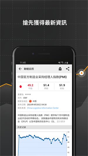 拥有来自各国的财经数据,可以全方位展示全球的关键经济指标与财经事件,还能查看历史数据并设置自定义事件提醒。