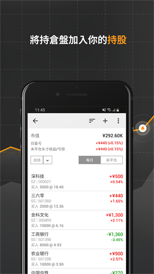 把您所关注的金融品种以及持仓情况加入到投资组合里面去,创建起专属的关注清单,这样就能随时掌握股票行情,货币,商品,指数,ETF以及债券的走向了。