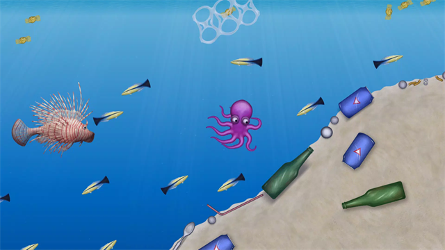 4、通过移动小章鱼进行吃垃圾,时间花的越少评价越高