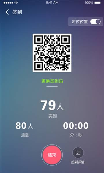 用户签到时,该应用会清楚显示自己的签到时间以及参与人数。