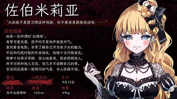 《魔法少女的魔女审判》这款游戏有着浓厚的悬疑色彩,属于黑暗哥特风格的视觉小说类游戏,故事从主角樱羽艾玛醒来并发现自己困在孤岛上的阴暗牢房里开始,这里关押着12个同样被囚禁的少女。一只能够说话的猫头鹰状典狱长告诉她们,大家都是持有“魔女因子”的预备魔女,会给人类社会带来危害,于是,这些少女不得不在这个与世隔绝的监牢里一起生活,但平静很快就被打破,一个少女遭到杀害,猫头鹰便宣布启动“魔女审判”,让幸存者们经由定期举行的审判找到潜藏的魔女并处死她,随着剧情的发展,玩家会慢慢知晓监牢的秘密,魔女存在的实情及其背后操纵之人。
