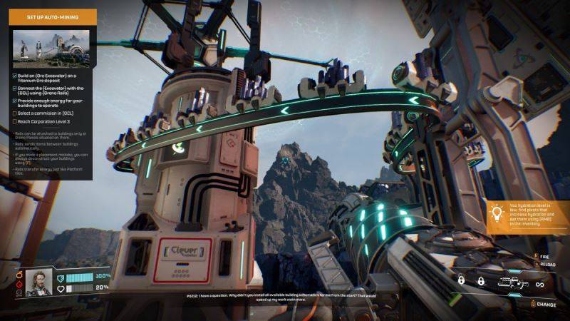 游戏中存在用于开采钛矿,钨矿的采矿机,发电机,也有用来获取氦气的机器,还有运输货物的无人机,可以向天空发射轨道的发射器,熔炉以及风力漩涡机等设施。