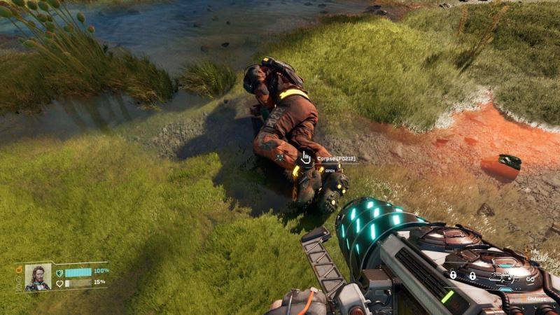 主角存在死亡机制,生命值缩减时会死亡,缺水时也会死亡。水边能够采集到白色果子,此果子用于补水,出生点重生舱附近有两处可获取药物。