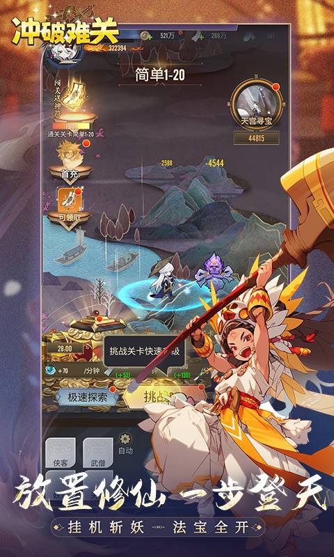 冲破难关是一款以国风妖怪为题材的趣味养成放置卡牌手游,游戏以东方修仙神话为核心背景,打造了沉浸式的斩妖除魔冒险征程。游戏不仅拥有精美的国风画面与新意十足的丰富剧情,更有上百位神话神将相伴登场,玩家可自由招募心仪神将,搭配多套阵容组建专属强力战队,在修仙旅途中斩妖除魔,冲破重重难关。游戏核心采用神魔羁绊搭配阵型克制的玩法设计,让策略闯关的体验更加丰富多彩,同时还设置了丰富的副本挑战、跨服联盟等多元特色玩法,为玩家开启一段惊喜不断的修仙之旅。