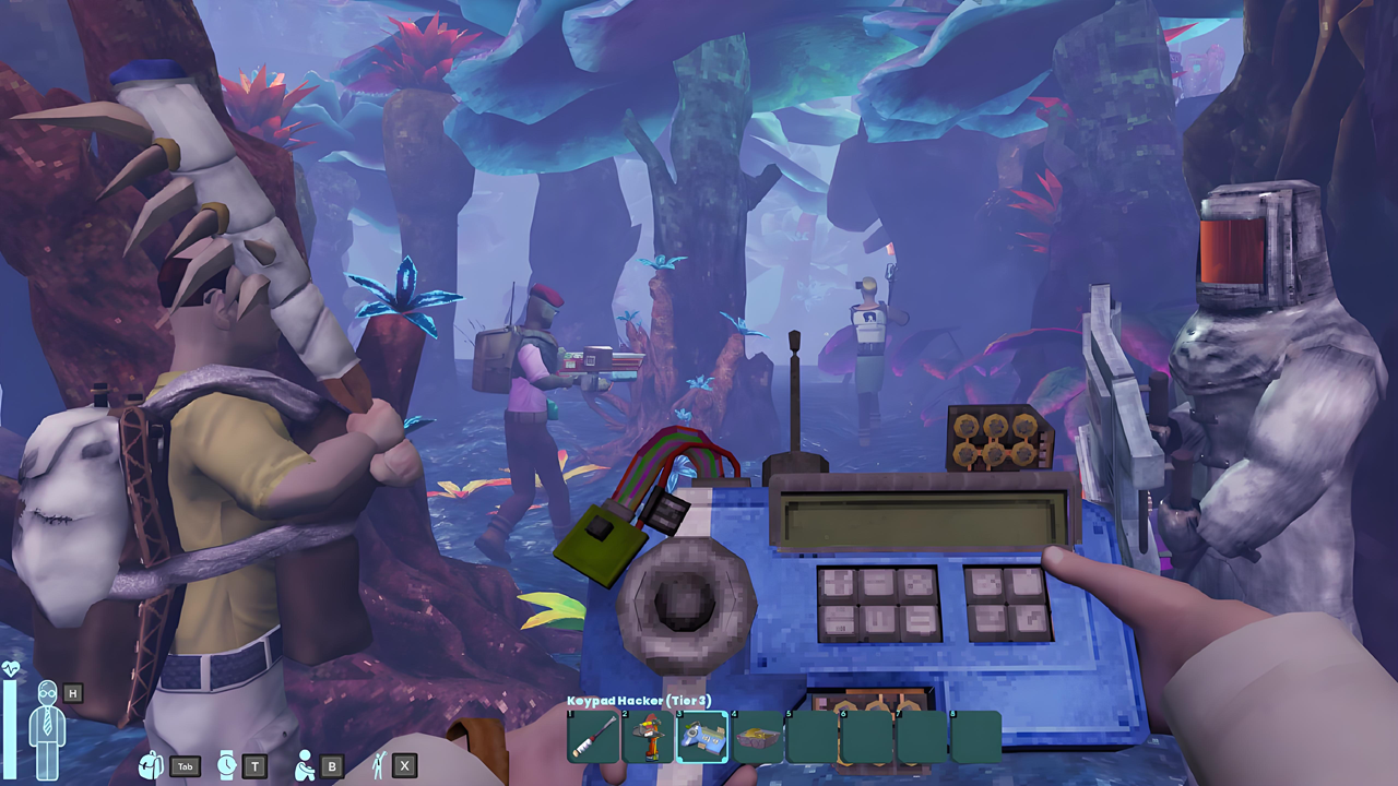 科研研发与道具制作体系,玩家可在探索过程中采集生物样本、矿物资源、科研设备零件,搭建不同等级的实验室工作台,通过样本分析、数据解锁推进科研进度,进而解锁从基础生存工具、防护装备,到高端动力外骨骼、基因改造药剂、能源武器、环境改造设备等各类道具,科研等级越高,可解锁的技术上限越高。