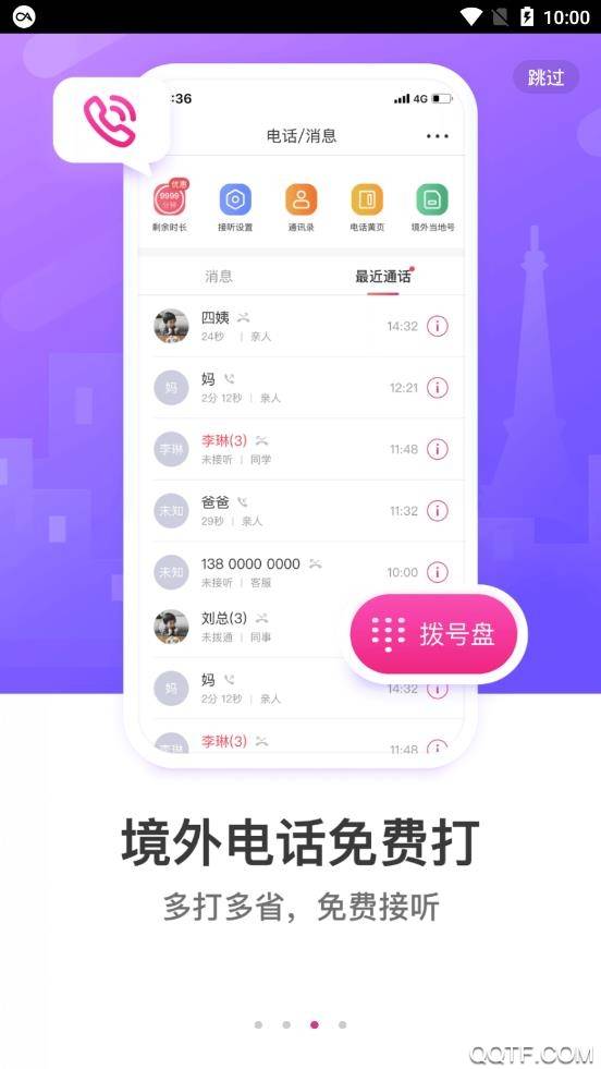 内置境外语音通话功能,可依托流量实现境内外号码的低价直连,国内手机号、固定电话均可正常拨打,无需支付高额国际漫游费,新用户可免费领取 100 分钟通话时长,支持 39 个国家和地区的通话服务。