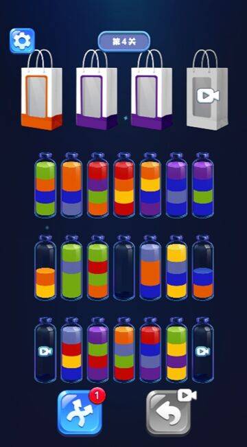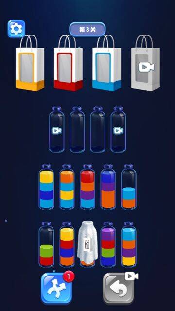 限步挑战关卡,核心是 “合并同色,减少步骤”,优先把分散在不同杯子里的同色液体合并到同一个杯子里,每合并一次,就能减少后续的倾倒步骤,别执着于先装满一个纯色杯,先合并同色,再逐步提纯,能大幅减少总步数,轻松达成三星标准。
