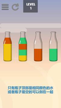 游戏里有免费提示功能,卡关时点提示,看个广告就能拿通关步骤指引,也能用重置道具重开,换个思路规划倒水顺序,大部分关卡都有好几种解法。