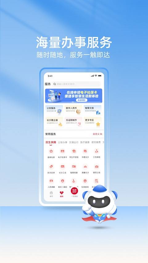 我的长沙app是长沙市人民政府官方推出的一站式城市综合移动服务平台,2019年11月正式上线,致力于打造“掌上办事之城”,为长沙市民及来长人员提供便捷高效的政务、公共和社会服务。软件整合市直各部门服务资源,汇聚上千项服务事项,覆盖民生保障、交通出行、医疗健康、人才教育等全场景,注册用户已突破600万,累计服务超2.26亿人次,是长沙人日常办事、生活出行的必备工具。