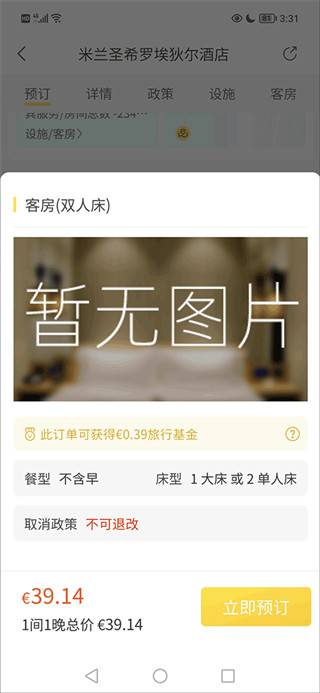 从列表中选择出想要入住的酒店,在详情页查看该酒店各个房型的价格、设施服务、顾客评价以及退改政策