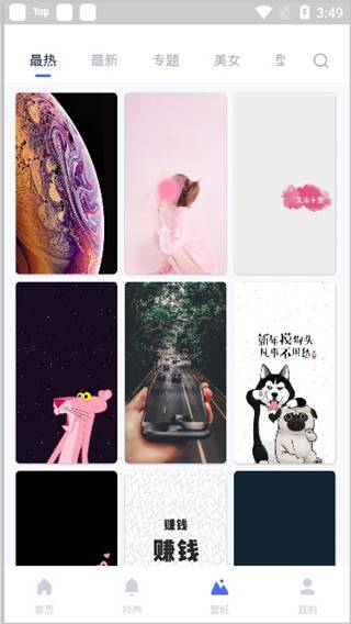 进入壁纸板块,可浏览最新、最热、专题分类的壁纸资源,全屏预览后可直接下载并设置为手机桌面或锁屏壁纸