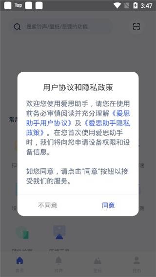 安装完成后打开应用,在用户协议与隐私政策弹窗中完成确认,授予对应设备权限后即可进入软件主界面