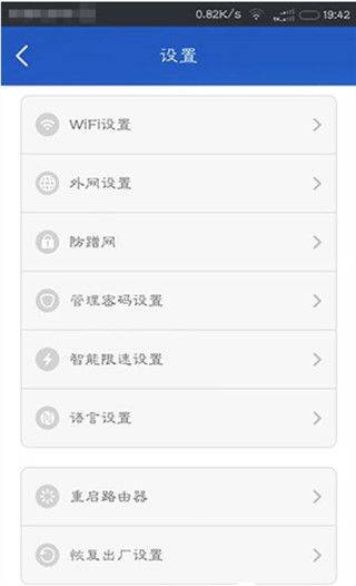 5、高级设置里面第一项为无线网密码修改,第二项为外网连接方式修改,第三项为防蹭网机制和勿扰模式,第四项为管理密码修改,第五项是对接入设备进行限速设置,第六项为语言设置。
