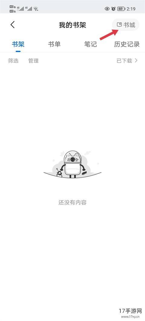 2、然后点击右上角的书城。