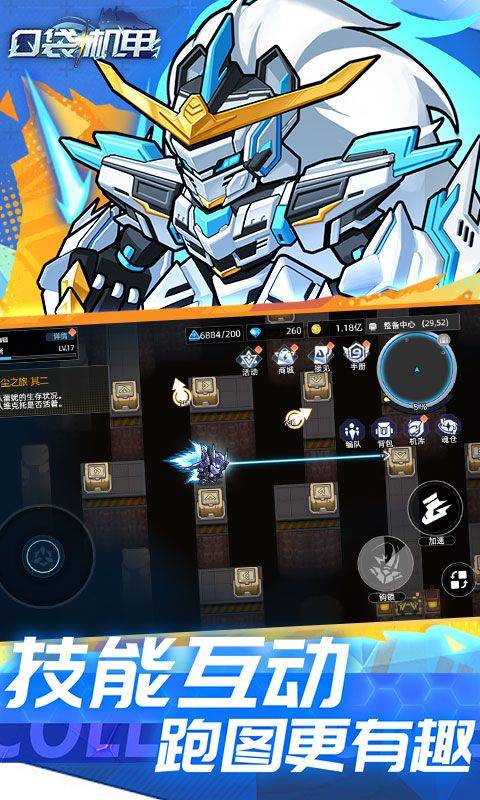 口袋机甲由杭州鲜芋科技有限公司开发,是一款融合解谜探索与回合制战斗的机甲题材角色扮演手游。游戏采用俯视固定视角,玩家将扮演一名搭载了古代遗物“机魂”的智能机器人,在帝国、骑士、商会、荒漠四大阵营之间穿梭,一边破解机关谜题一边收集遗失或暴走的机魂,逐步挫败帝国的阴谋。游戏以机魂技术引发的阵营冲突为主线,剧情推进伴随大量对话与CG,语言风格贴近生活化,夹杂无厘头吐槽,降低了科幻设定的理解门槛。玩家需要控制角色在像素风格的地图中自由跑图,利用推箱子、路径规划、机关解锁等多种解谜玩法获取资源,同时指挥最多4名机魂组成的队伍进行回合制对战。整体流程强调“解谜驱动探索,探索赋能战斗,战斗反哺解谜”的正向循环。游戏支持iOS和Android双平台,2026年1月30日正式开启全平台公测,当前最新版本为v1.1.30。